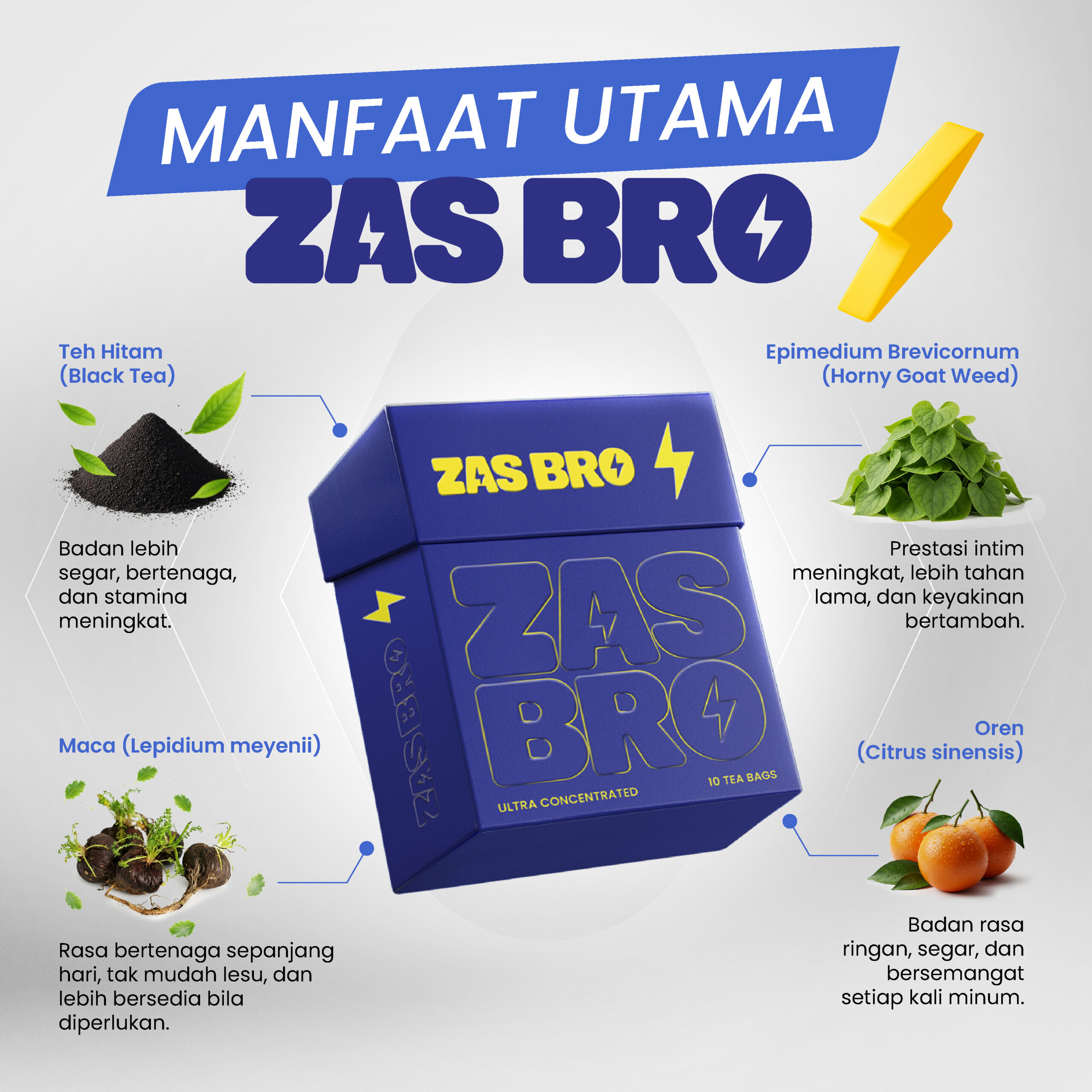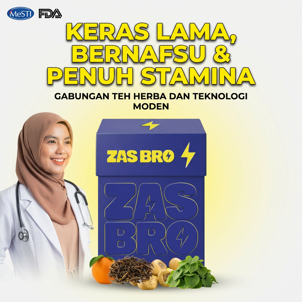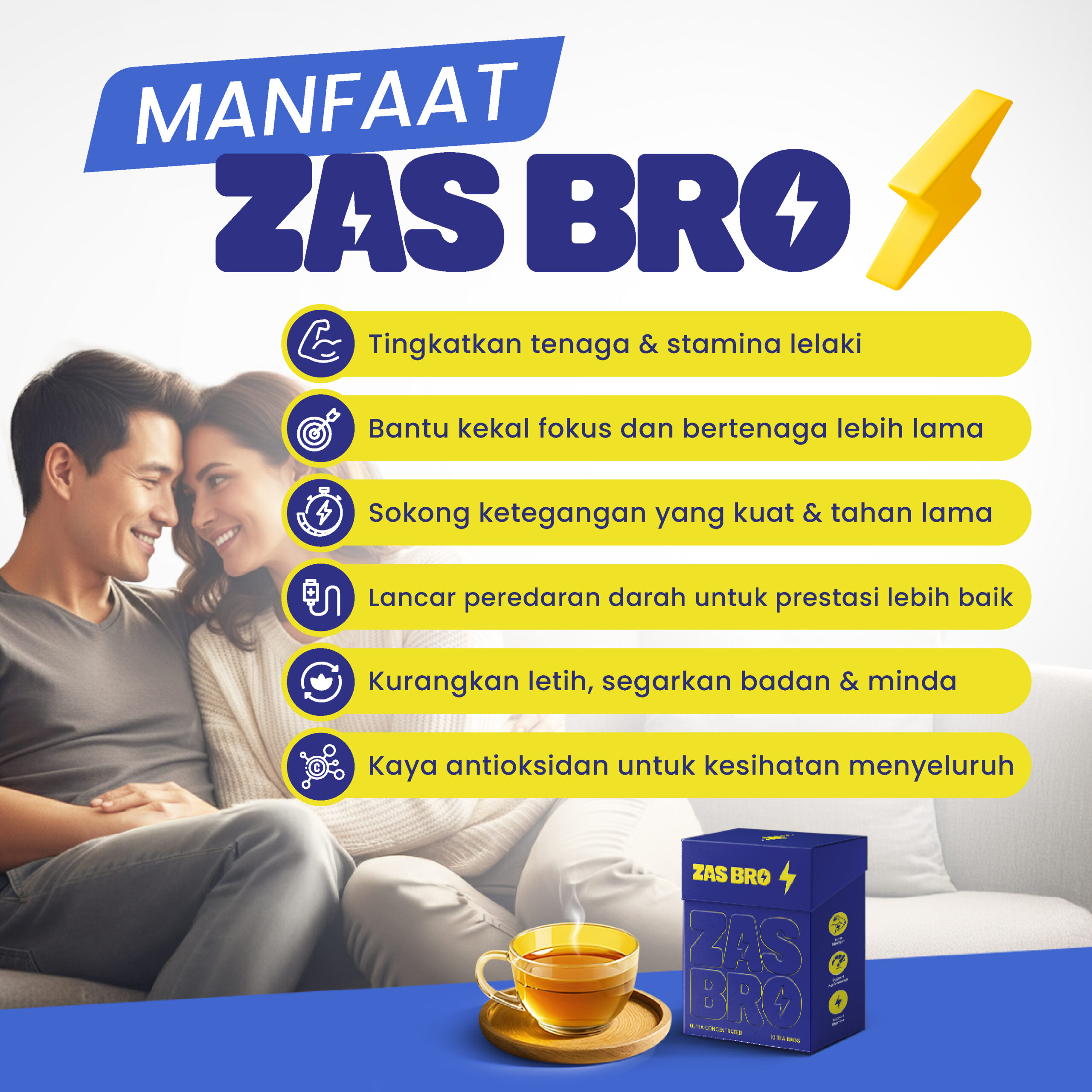 ZAS BRO ialah Teh Herba lelaki berformula kuat yang direka untuk lelaki yang mula hilang tenaga, fokus dan “drive”.